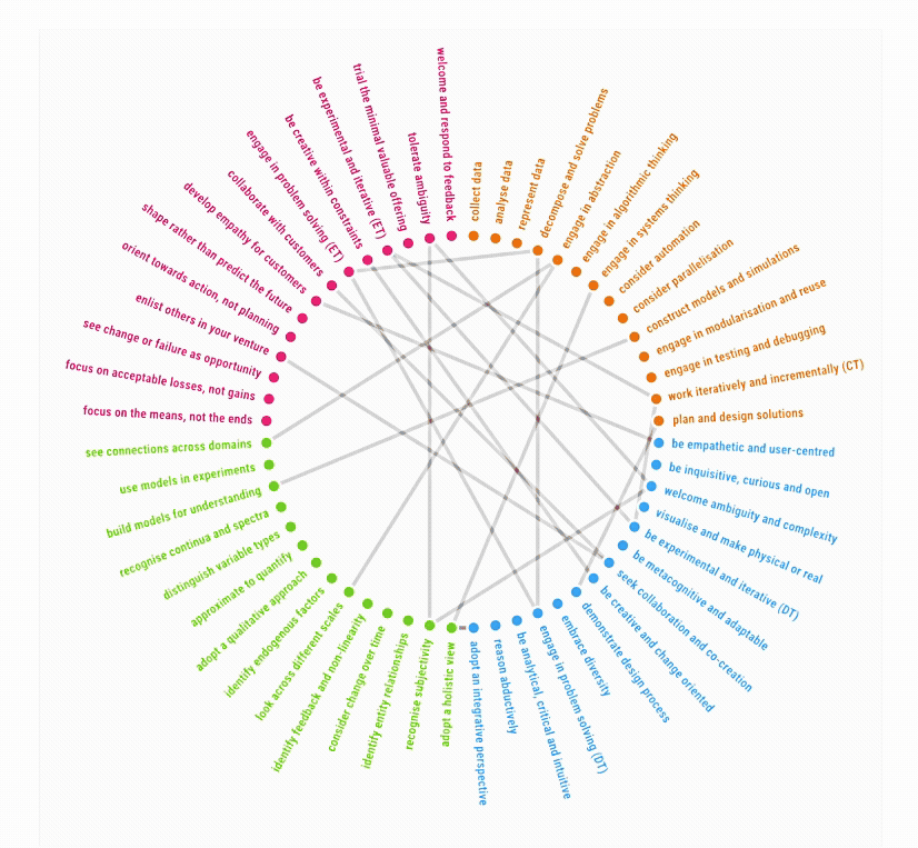 Lots of thinking skills have been identified, not just those few listed above. However, it has always been difficult to establish which skills to prioritise and to find ways to compare or combine them. To address this, recent and ongoing research is here made accessible through a collection of interactive visualisations.